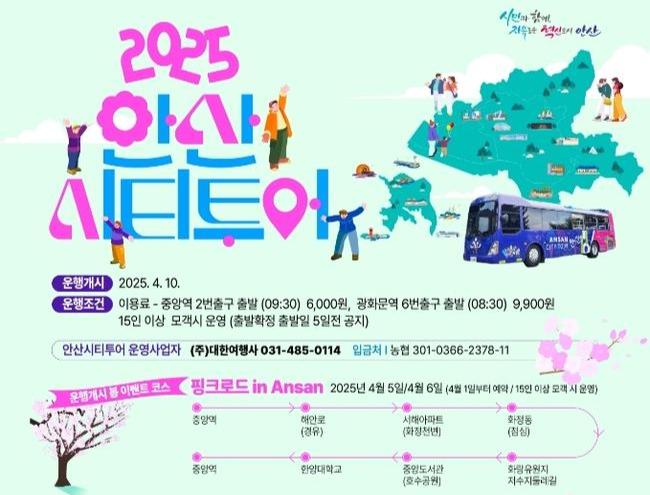 이밖에 안산시 주요 관광지 세 코스 이상을 구성해 20인 이상의 단체가 신청하면 안산시티투어 버스를 맞춤형으로도 이용할 수 있다. 4월 1일부터는 안산시티투어 운행개시 이벤트 코스로 5일(토)과 6일(일) 안산의 벚꽃을 따라 운행하는 `핑크로드 in 안산` 코스 예약을 진행한다.
