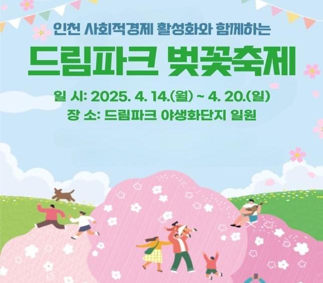 인천광역시(시장 유정복)는 4월 14일부터 20일까지 일주일간 수도권매립지 드림파크 야생화단지 일원에서 열리는 `드림파크 벚꽃축제`와 연계해 `인천시 사회적경제 페스티벌`을 개최한다고 밝혔다.