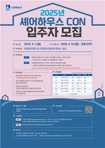 수원시는 셰어하우스 CON에 입주할 청년을 모집하고 있다. 수원시 홈페이지 검색창에서 `셰어하우스 CON`을 검색해 신청하면 된다.