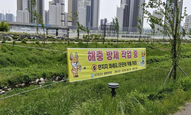 인천 서구(구청장 강범석)는 산책로 및 수변 공원 등에 `끈끈이 현수막`을 게시해 말라리아 매개 모기와 유해 해충 관리에 나선다고 15일 밝혔다.