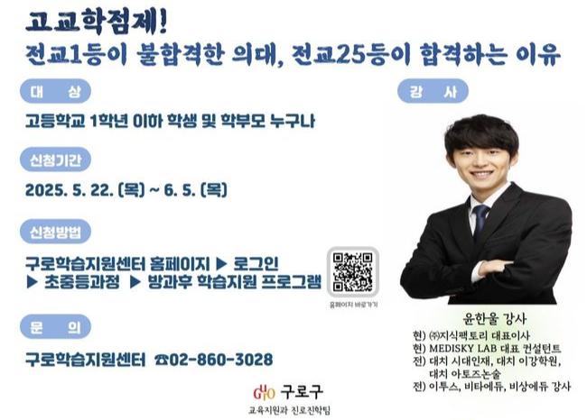 참가비는 없으며, 신청은 구로학습지원센터 누리집에서 ‘초중등과정-방과후 학습지원 프로그램’ 메뉴를 통해 6월 5일까지 가능하다.