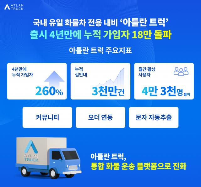국내 유일 화물차 전용 내비 ‘아틀란 트럭’ 출시 4년 만에 누적 가입자 18만명·누적 길 안내 3000만 건 돌파