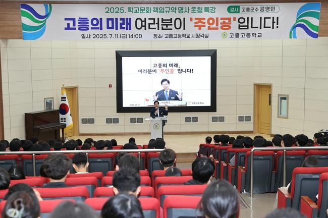 고흥군(군수 공영민)은 11일 지역 인재 양성의 산실인 고흥고등학교에서 `고흥의 미래, 여러분이 주인공입니다`를 주제로 특강을 진행했다고 밝혔다.
