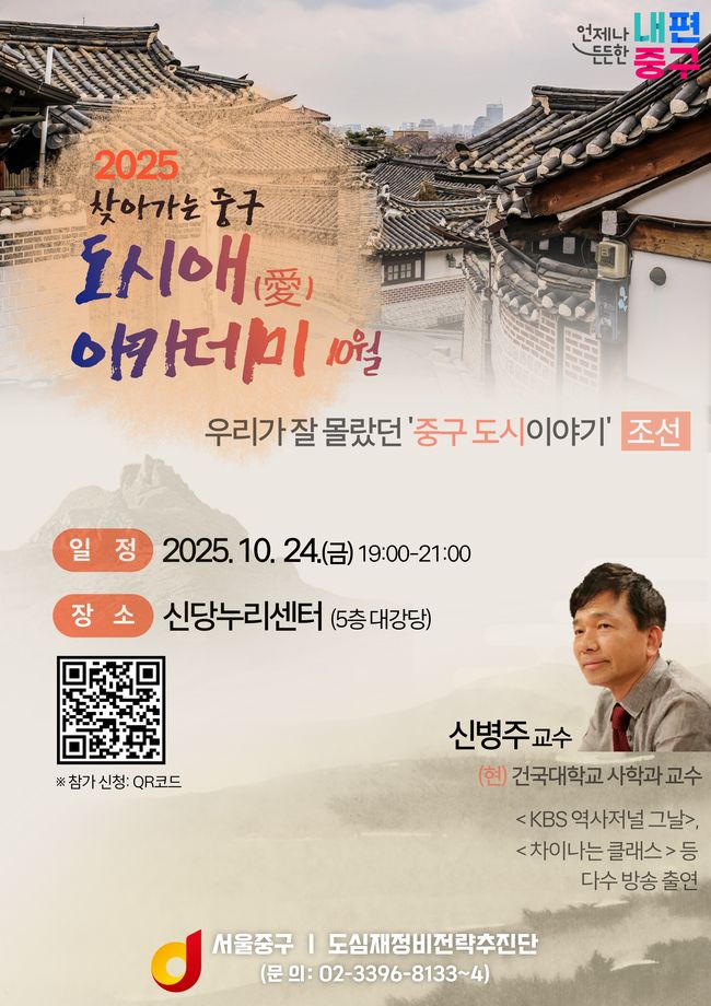 중구 관계자는 “도시애(愛) 아카데미는 중구의 과거와 현재, 미래를 연결하는 소통의 통로”라며 “이번 강연을 통해 주민들이 우리 지역의 역사와 문화적 매력을 새롭게 발견하고, 도시 속 삶의 의미를 되돌아보는 기회가 되길 바란다”고 말했다.