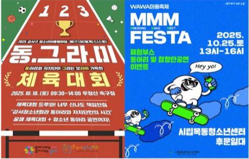 이외에도 서남권의 여러 청소년기관이 10월 중 개별 축제를 운영한다. 예를 들어 강서청소년회관이 주관하는 ‘2025 강서구 청소년어울림마당 10월 청춘 is_. 동.그.라.미’는 10월 18일(토) 우장산 축구장에서 열린다. 200여 명의 청소년이 참여해 체육 활동, 동아리 공연, 장기자랑 등 다채로운 프로그램을 함께한다.