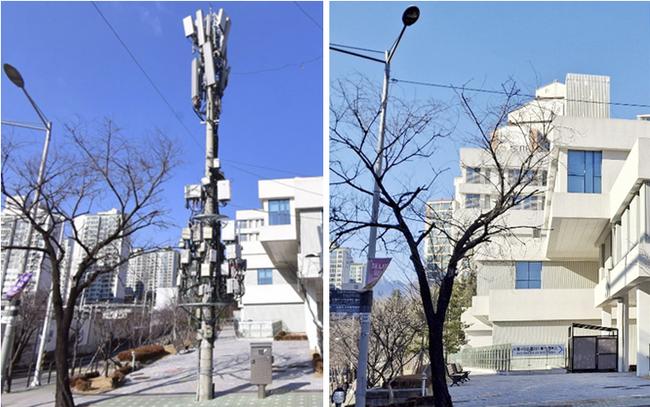 이동통신중계기 철거 전(왼쪽) 철거 후 사진
